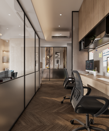 This project is developed with a strong emphasis on spatial efficiency, functional zoning, and technical precision. The planning follows a clear circulation strategy, separating work zones, collaborative areas, and support spaces to maximize workflow and operational performance. Material selection has been guided by durability and acoustic performance, while surface finishes have been chosen to enhance both visual clarity and maintenance efficiency. Integrated lighting systems and optimized ventilation support visual comfort and thermal balance. Every design decision is driven by architectural logic, ensuring a workspace that is structurally sound, performance-oriented, and aligned with modern workplace standards.